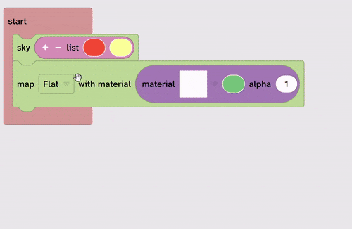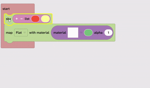 From Materials drag the list of colours block inside the sky block